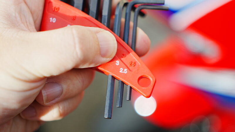 今回のロングスクリーンの取り替えにかかる時間は約20分。 必要な工具は六角レンチセット1つだけです。